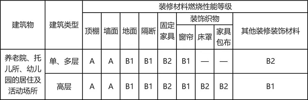 1. 托儿所、幼儿园建筑内各部位装修材料的燃烧性能等级。