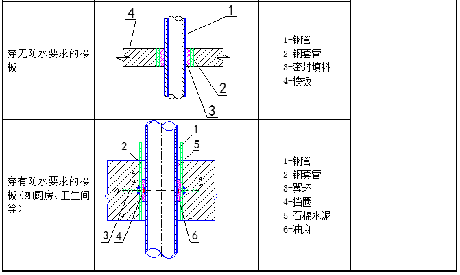 穿核芯筒和功能层房间后砌隔墙套管预留预埋施工,主要采取以下形式,安装方法及要求如下: